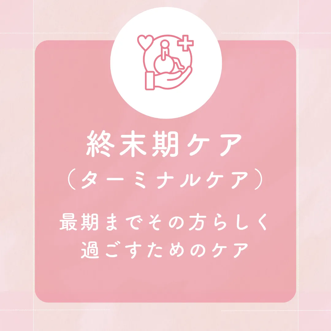 人生の最期の時間を「どこで」「誰と」「どう過ごすか」考えることは、決して容易なことではありません。ご本人様やご家族様が抱える不安と向き合い、後悔のない時間を過ごせるよう、さまざまな選択肢を共に考え、支えることが私たちの使命です。最期まで住み慣れたご自宅で自分らしく過ごしたい方には、在宅でのお看取りを全力でサポートいたします。「人生の最期まで望む生活を」その思いを胸に、苦痛の緩和や医療管理はもちろん、栄養管理、口腔ケア、排泄、褥瘡、リハビリなどの専門的なケアを提供いたします。急な体調変化にも24時間緊急対応体制で安心をお届けいたします。